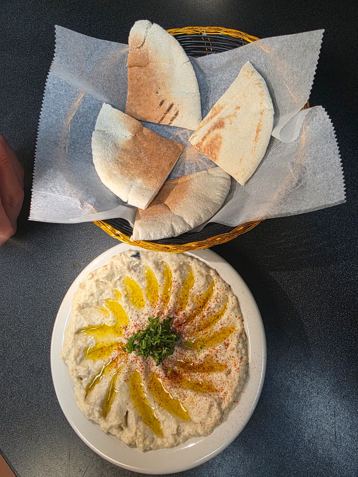 Eggplant blended with sesame paste, yogurt, garlic, and lemon juice