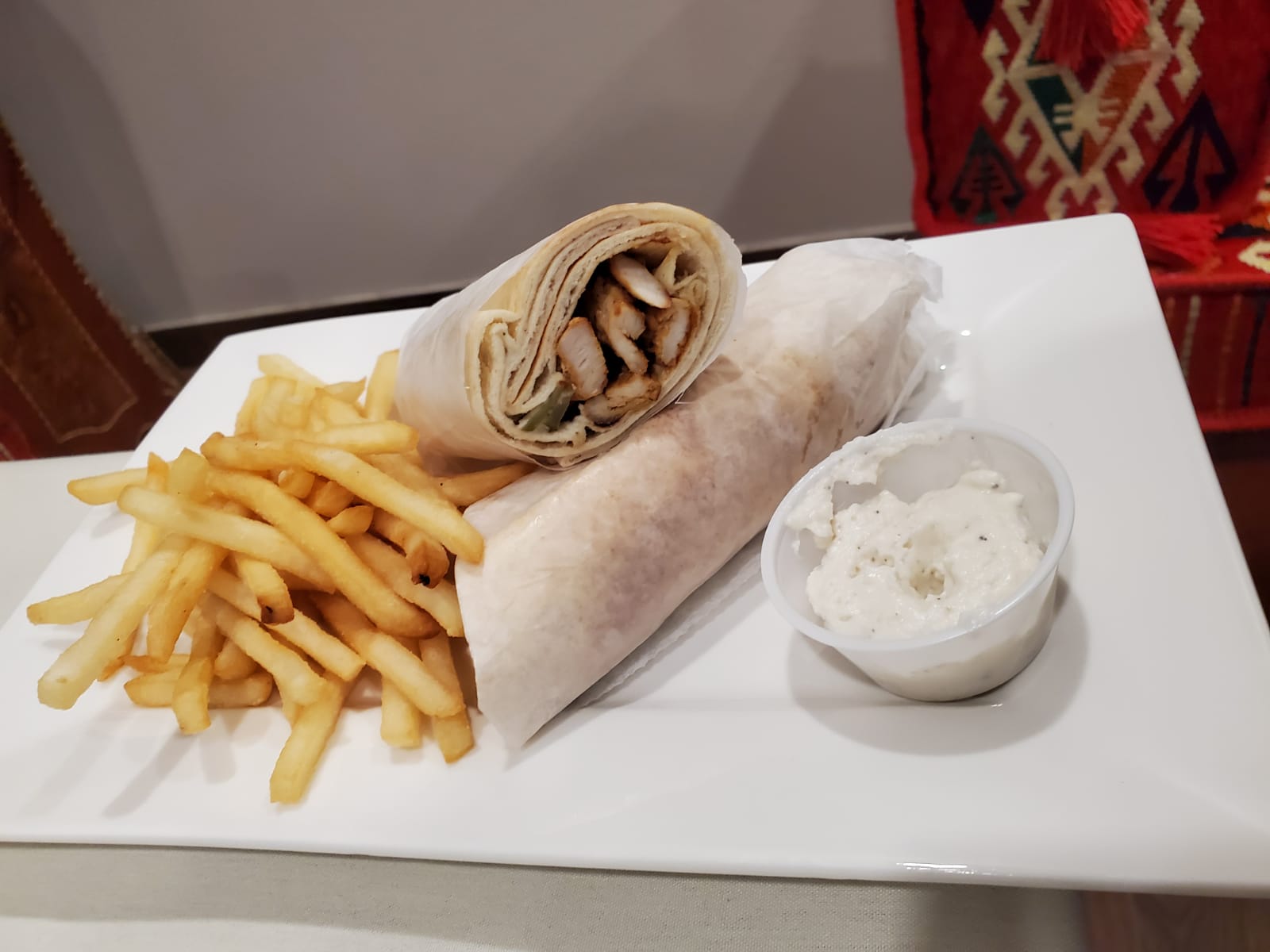 One kofa, one shish tawook, one shish kebab