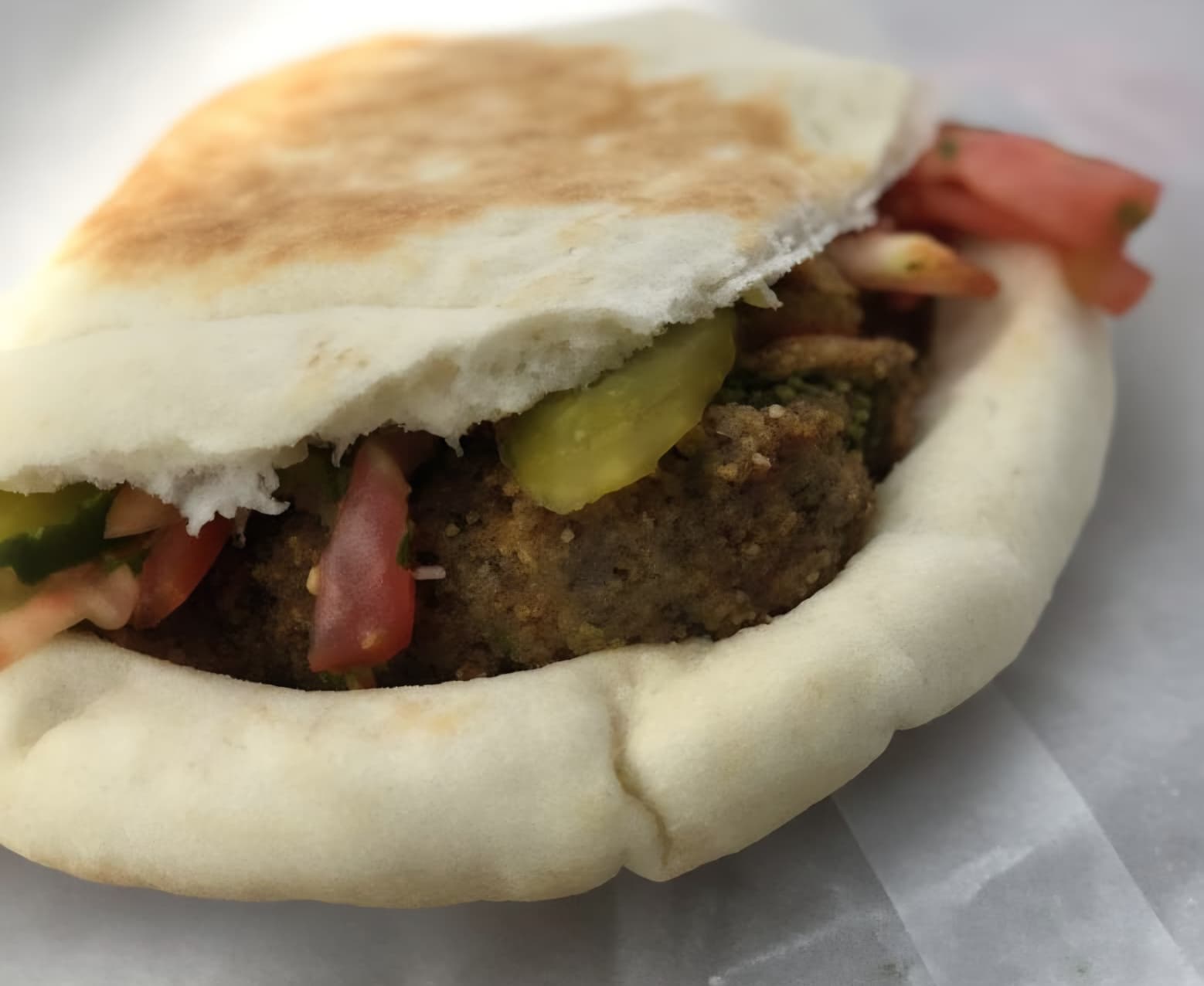 Lettuce, tomato, parsley, pickles, tahini sauce.